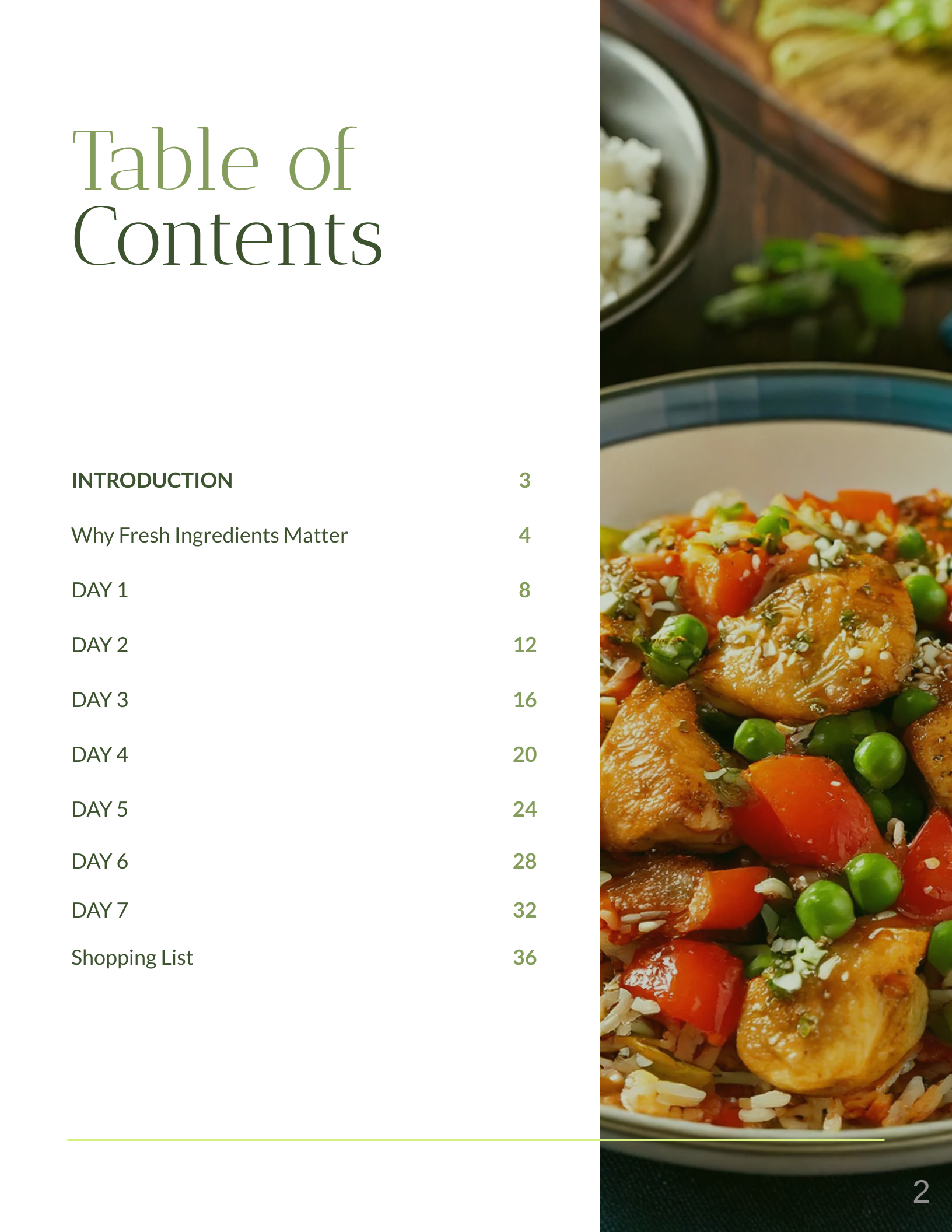 - A Complete 7-Day Meal Plan – Enjoy a week’s worth of carefully selected breakfasts, lunches, and dinners that are both healthy and budget-friendly.