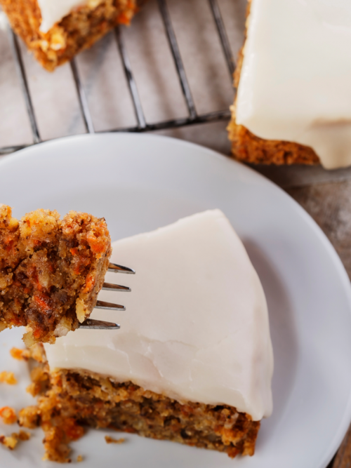 This carrot cake is a much healthier version, using natural sweeteners, gluten-free flour, and Greek yoghurt for the frosting, making it lighter than traditional cakes. It’s
