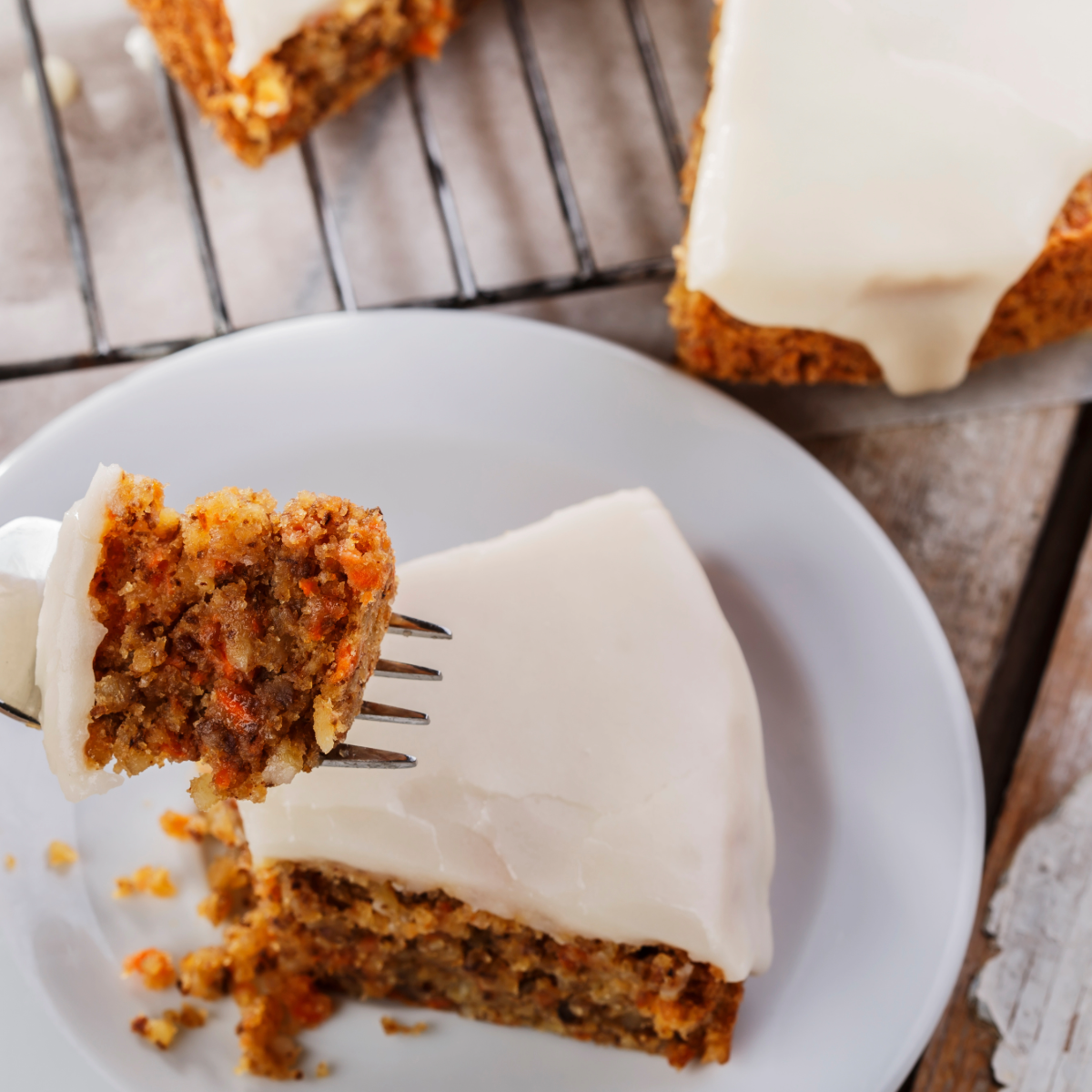 This carrot cake is a much healthier version, using natural sweeteners, gluten-free flour, and Greek yoghurt for the frosting, making it lighter than traditional cakes. It’s a great balance of protein, fats, and carbohydrates!