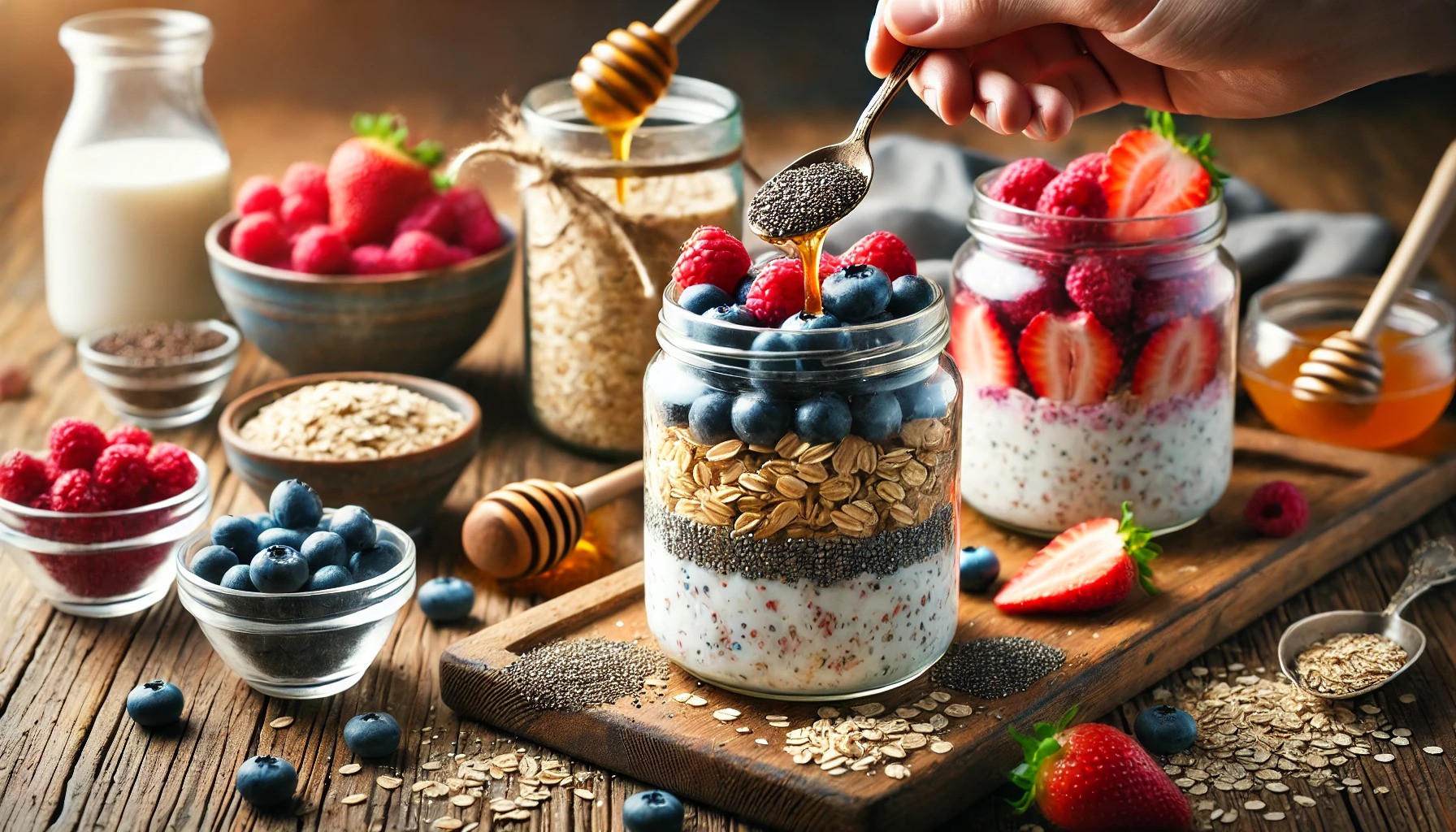Overnight oats with berries is a nutritious, easy-to-make breakfast that’s perfect for busy mornings. Prepared the night before, these oats become soft and creamy by morning, absorbing the flavours of almond milk and honey. Topped with a colourful mix of berries, including strawberries, blueberries, and raspberries, this breakfast is not only visually appealing but also packed with antioxidants, fibre, and protein to keep you energised throughout the day. With a touch of chia seeds for added nutrients, this breakfast offers a balance of sweetness and freshness, ideal for a healthy start.