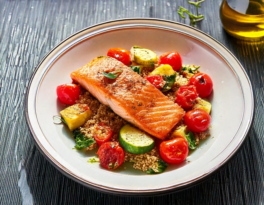 Looking for a light yet satisfying evening meal that’s both nourishing and full of flavour? This Garlic Lemon Salmon with Roasted Veggies & Quinoa is the perfect choice! Inspired by Mediterranean ingredients, this dish combines the richness of omega-3-packed salmon with the fresh, earthy taste of roasted vegetables. Paired with fluffy quinoa, it’s a balanced meal that’s easy to prepare and deliciously healthy.